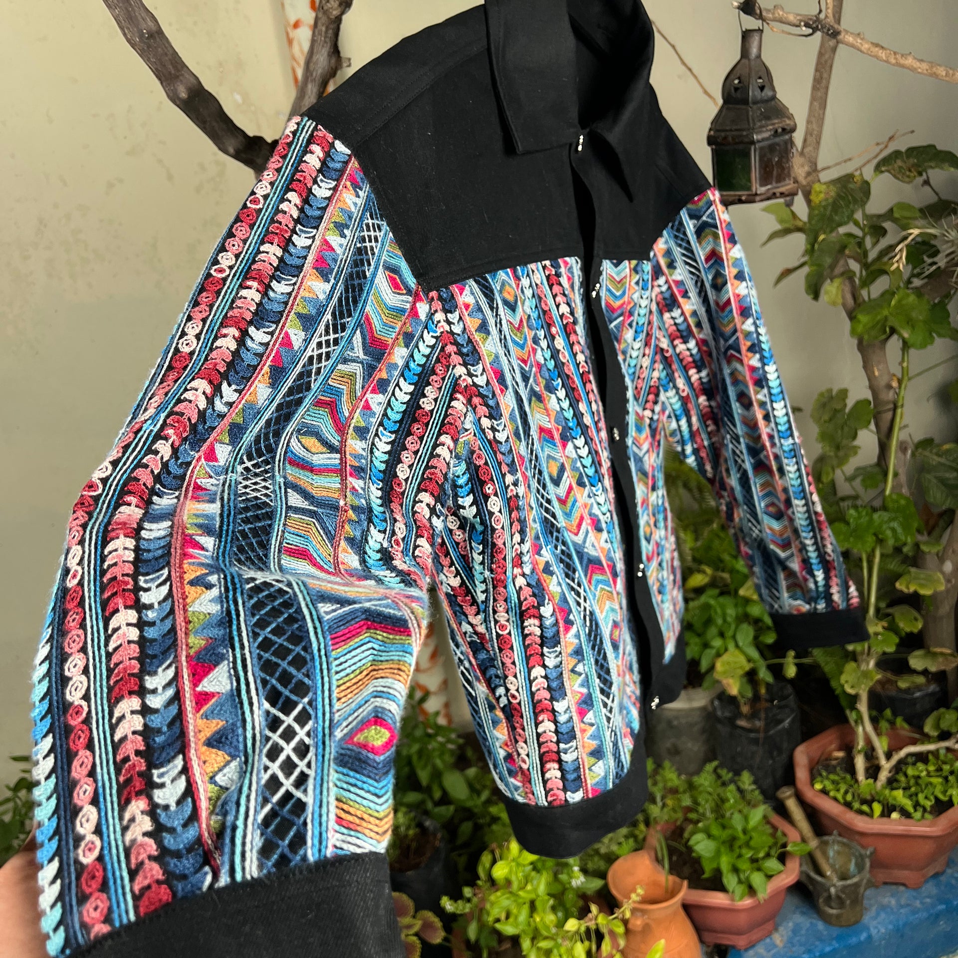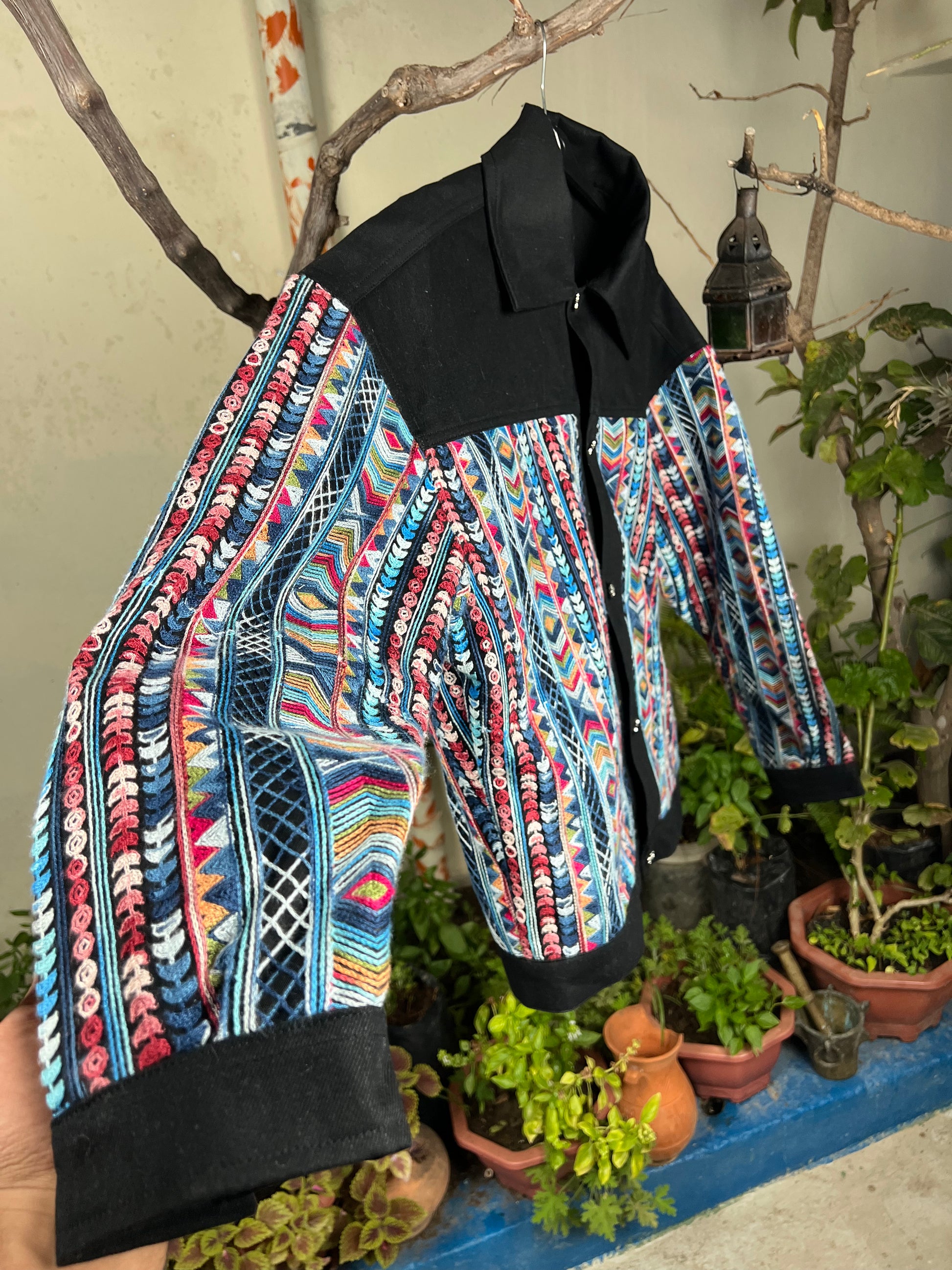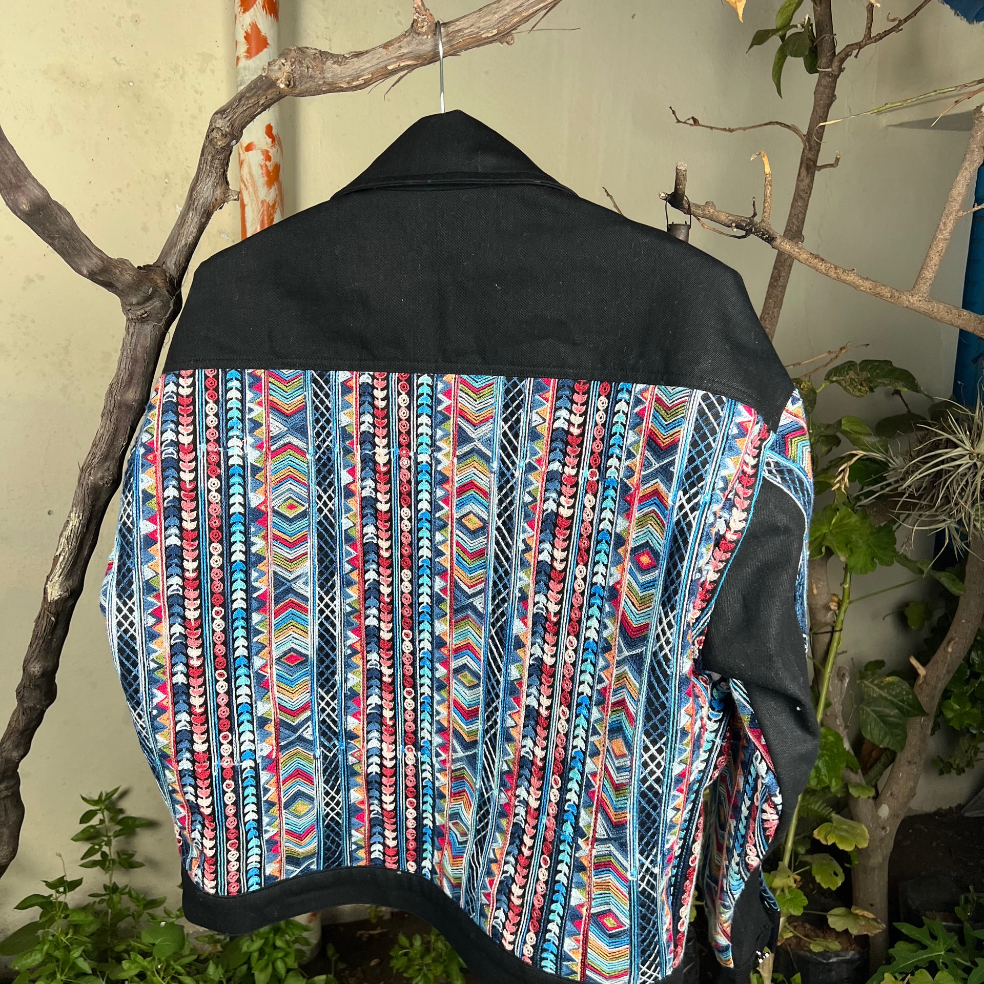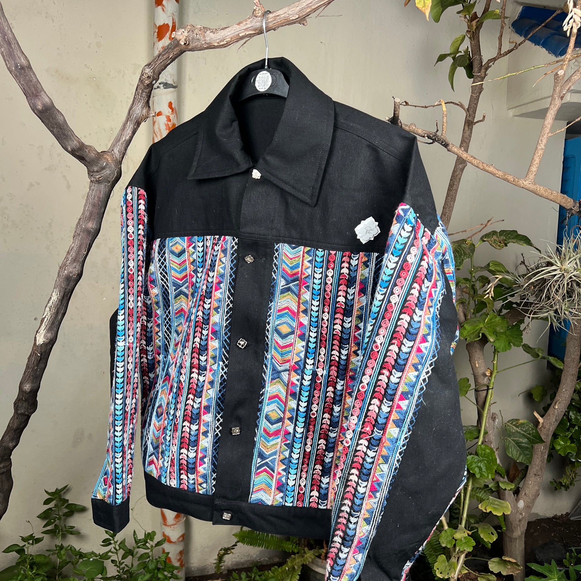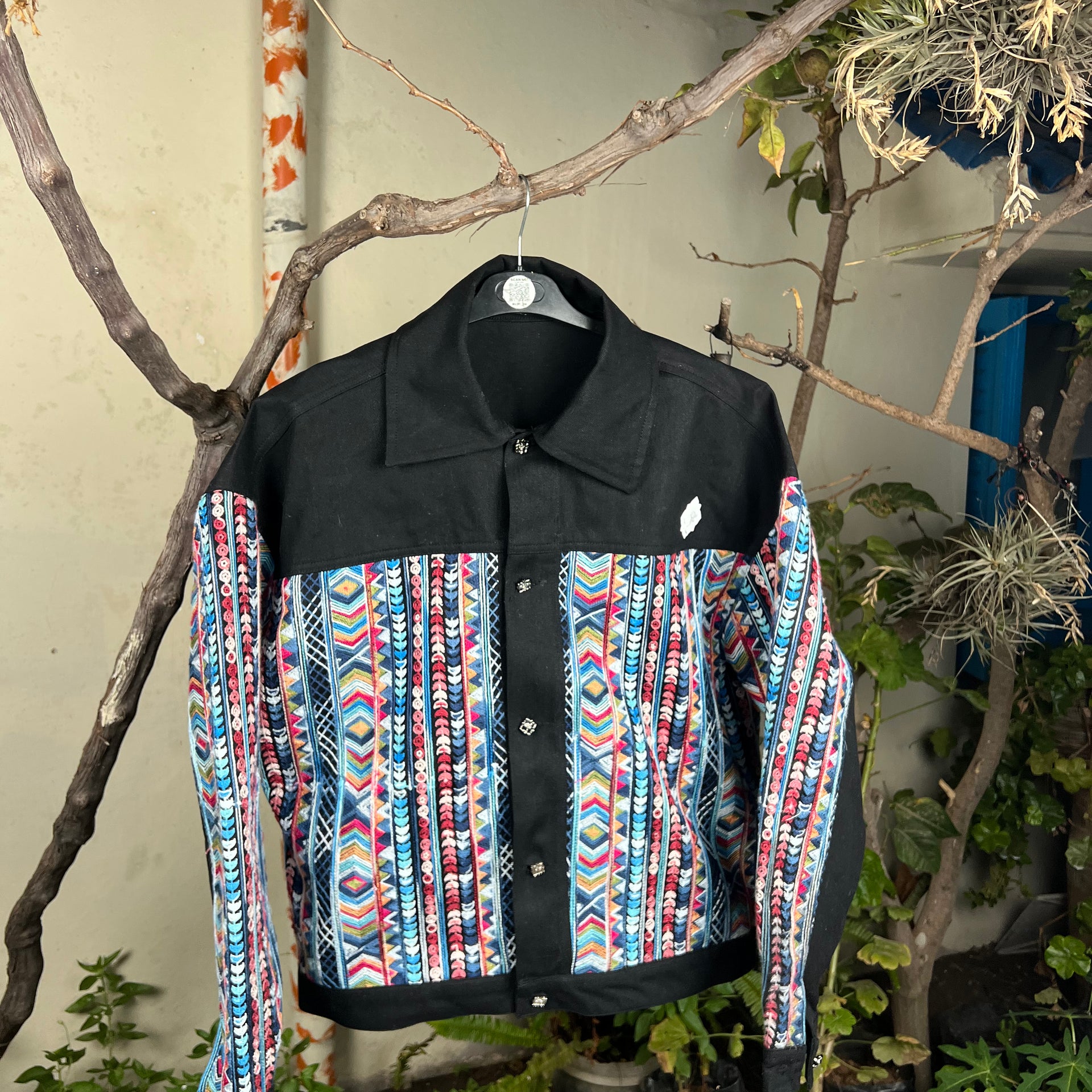 Avec son style moderne et artisanal, cette veste allie l’élégance intemporelle du denim noir au charme vibrant d’un tissage traditionnel fait main. Parfaite pour celles et ceux qui recherchent une veste originale, de qualité durable, et qui raconte une histoire familiale à travers son design.