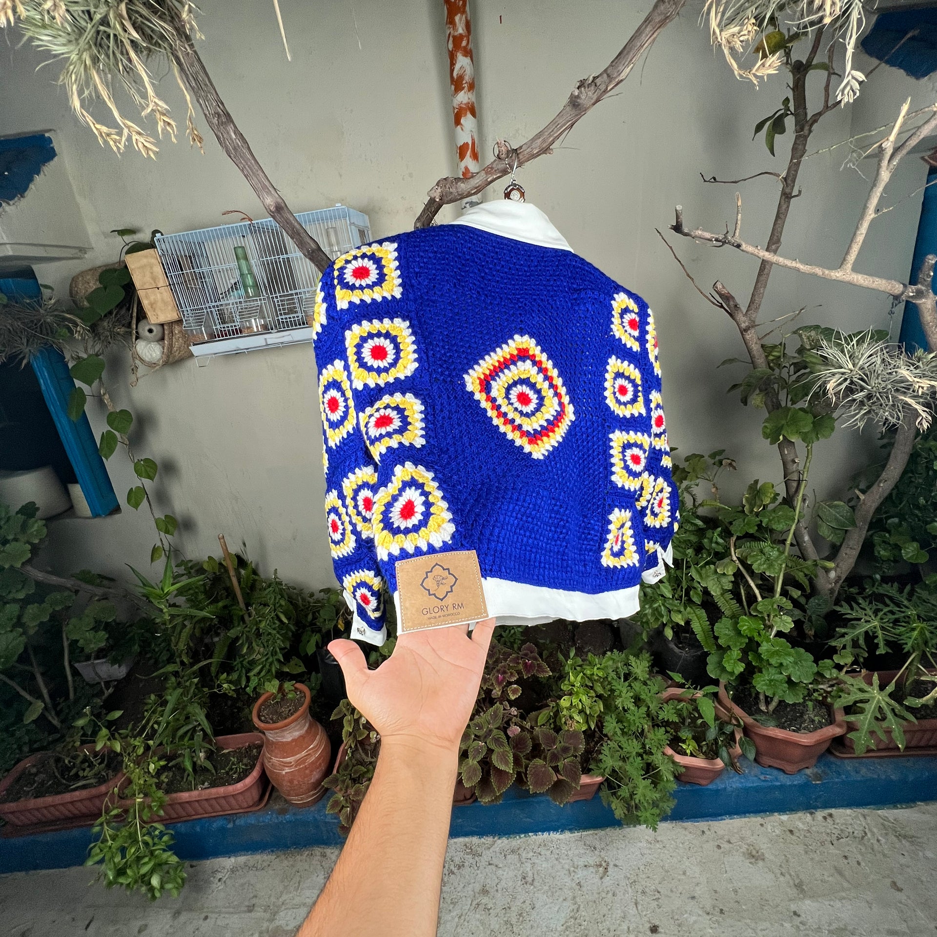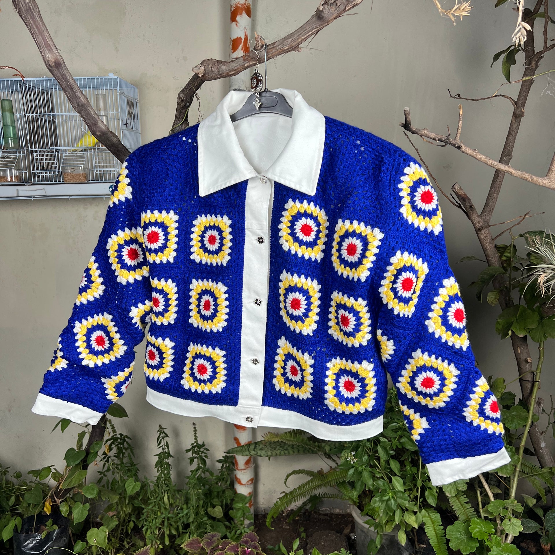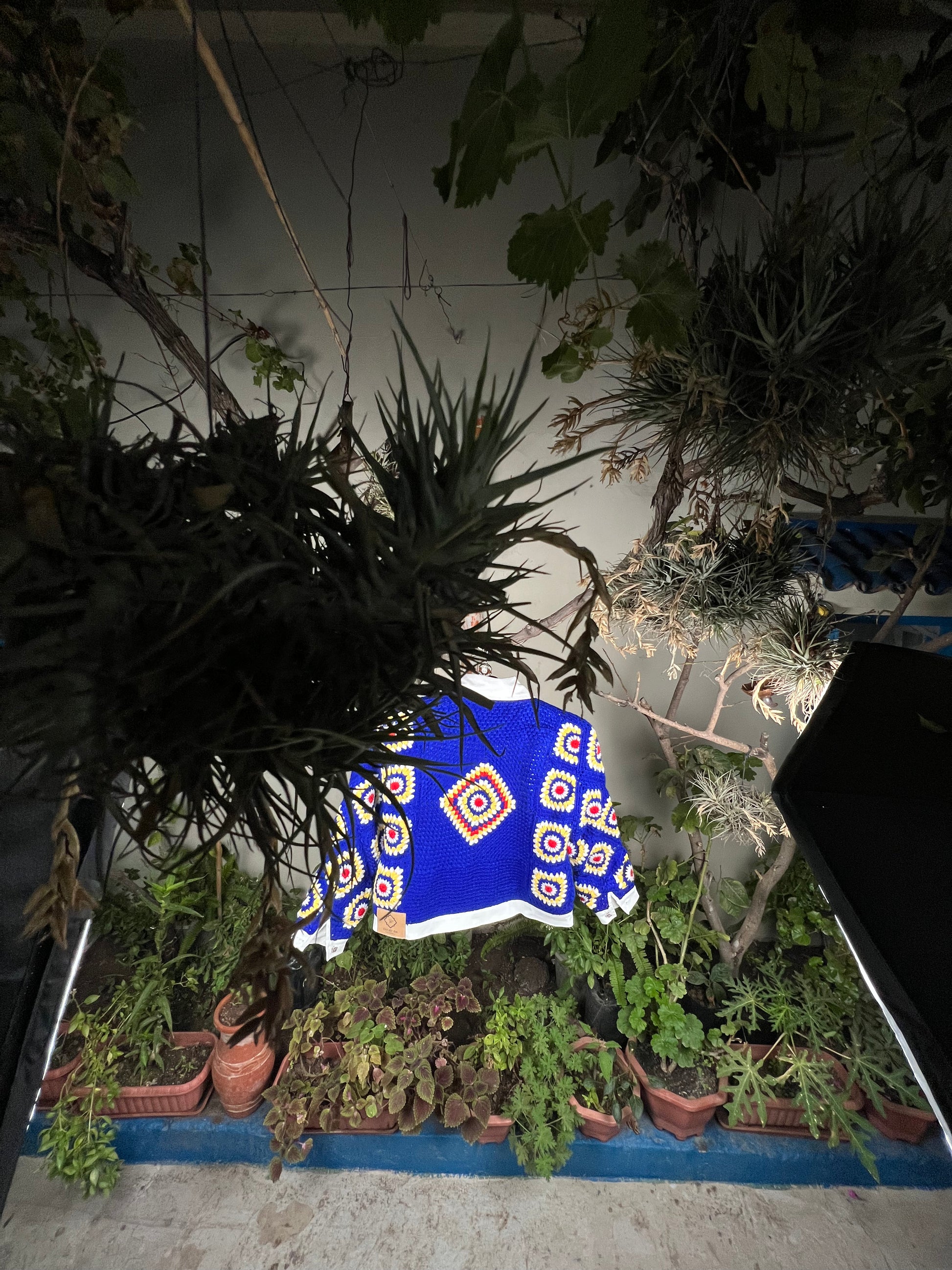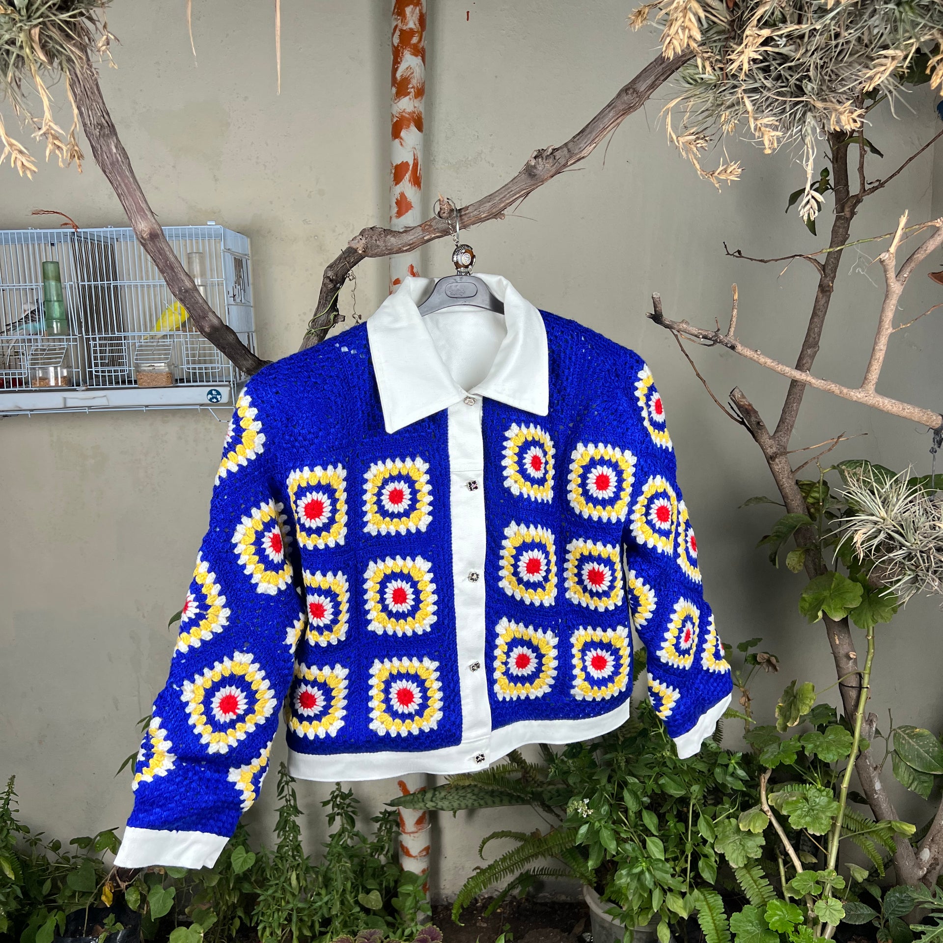 Confectionnée en denim doux et oversize, cette pièce artisanale allie confort et modernité. Ses couleurs rappellent le ciel et le soleil du Maroc 🇲🇦, transformés en une veste unique qui se porte comme une œuvre d’art.