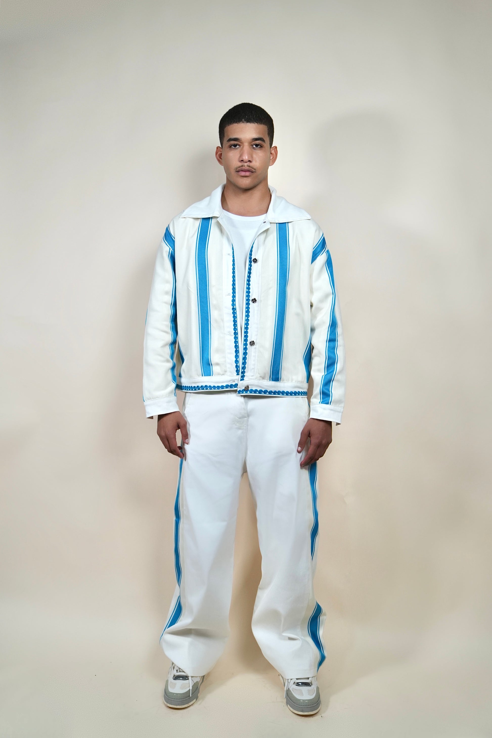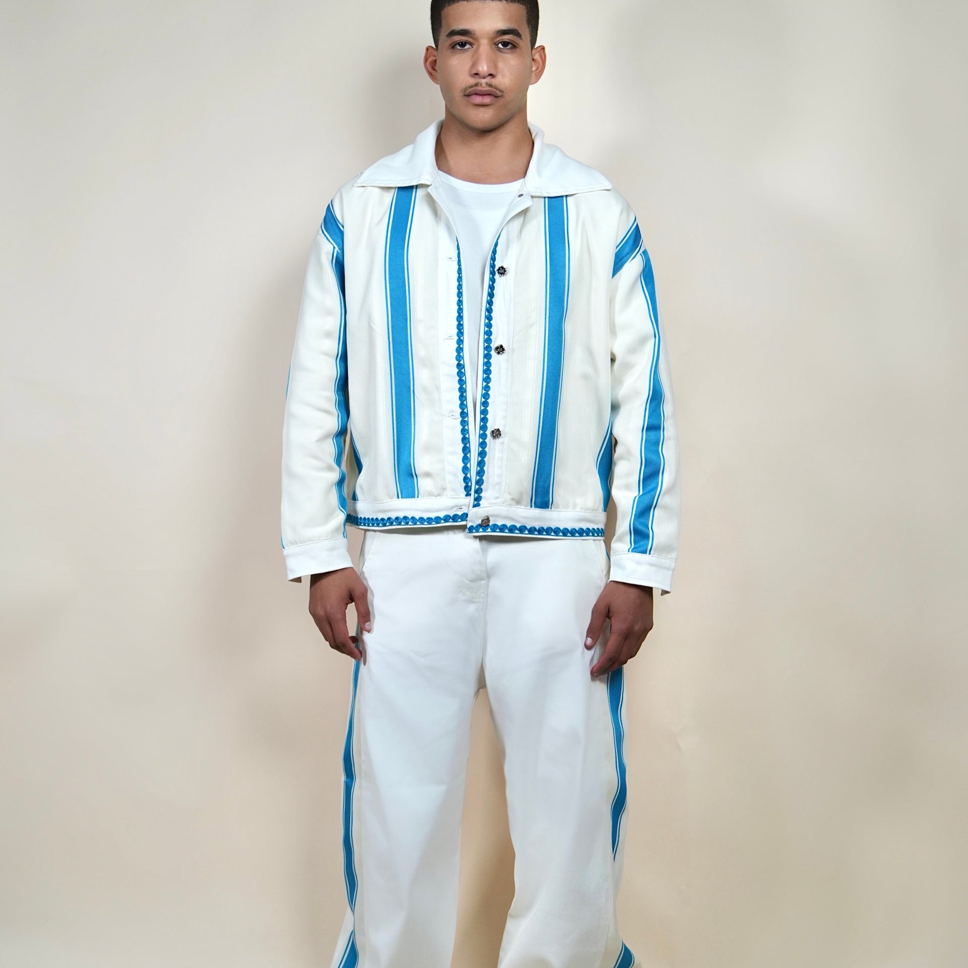 The pale blue and beige tones evoke serenity while staying rooted in Moroccan craftsmanship.