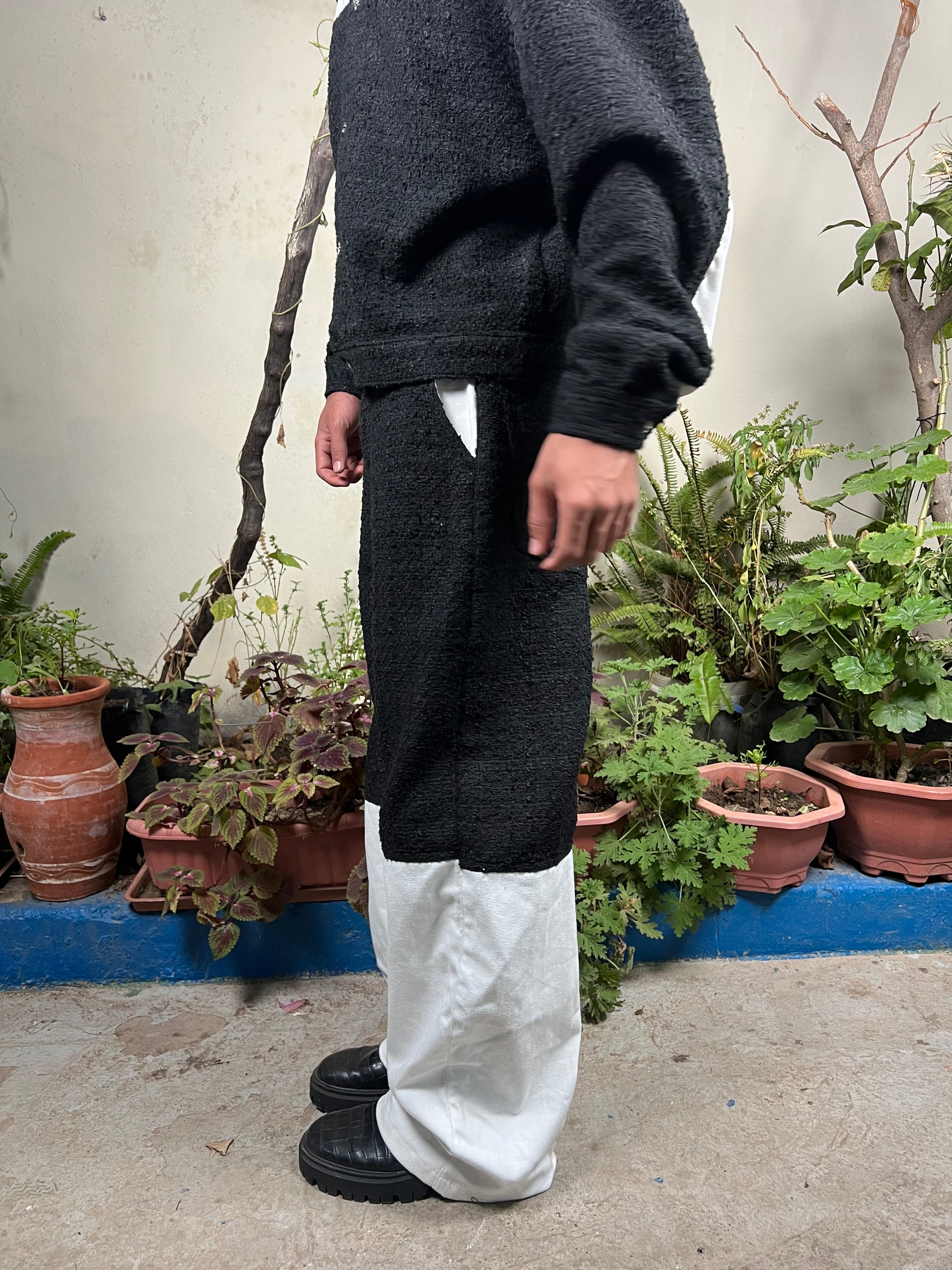 Handmade in Morocco, the Dream in Black set brings contrast to life — crafted from soft tweed and pure denim for a perfect blend of texture and strength.