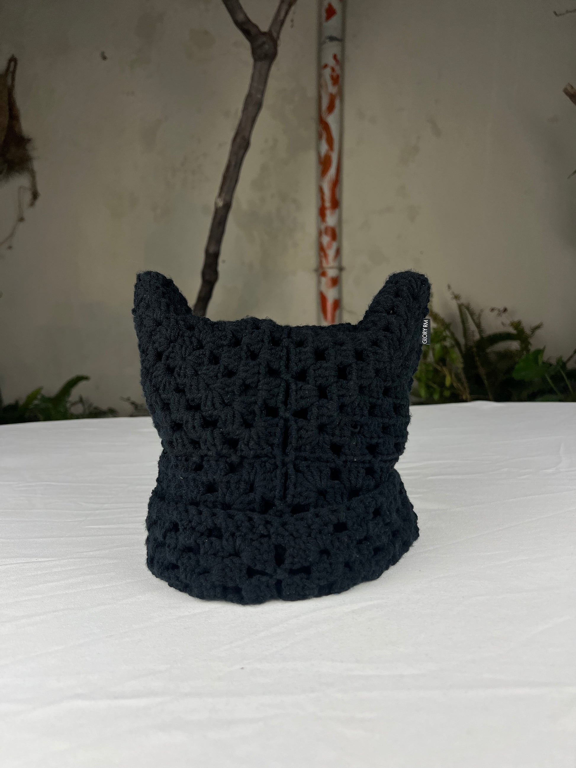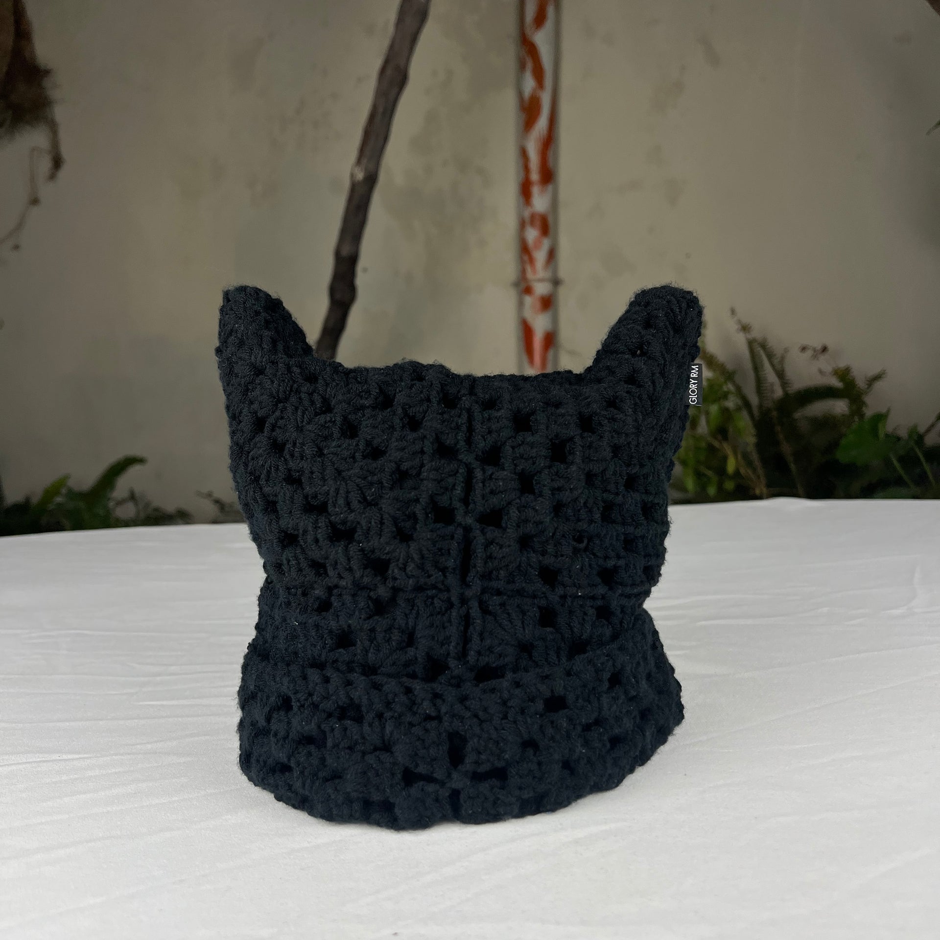 Hand-crocheted from premium wool, its deep black tone captures the essence of simplicity elevated to art.