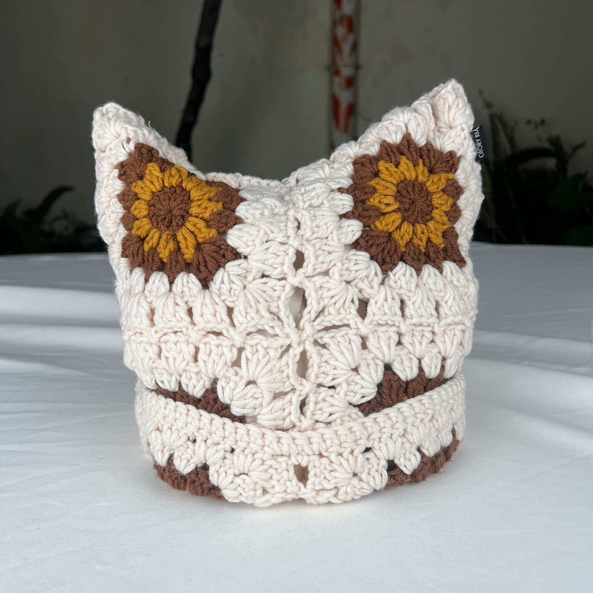 Hand-crocheted with premium wool, its golden and cream tones reflect nature’s calm — like sunlight melting into thread.