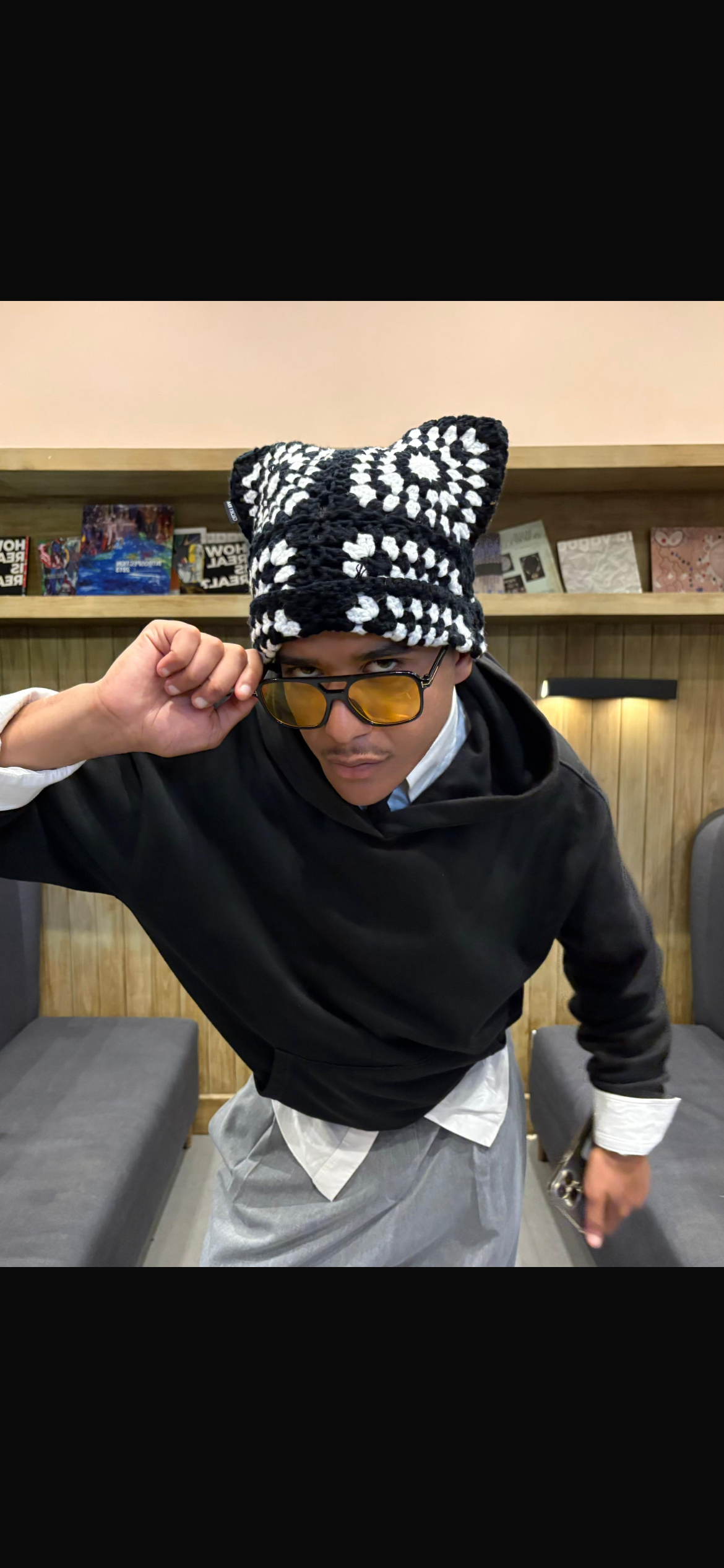 The Black Mosaic Hat — where contrast becomes creation, and simplicity turns into art.