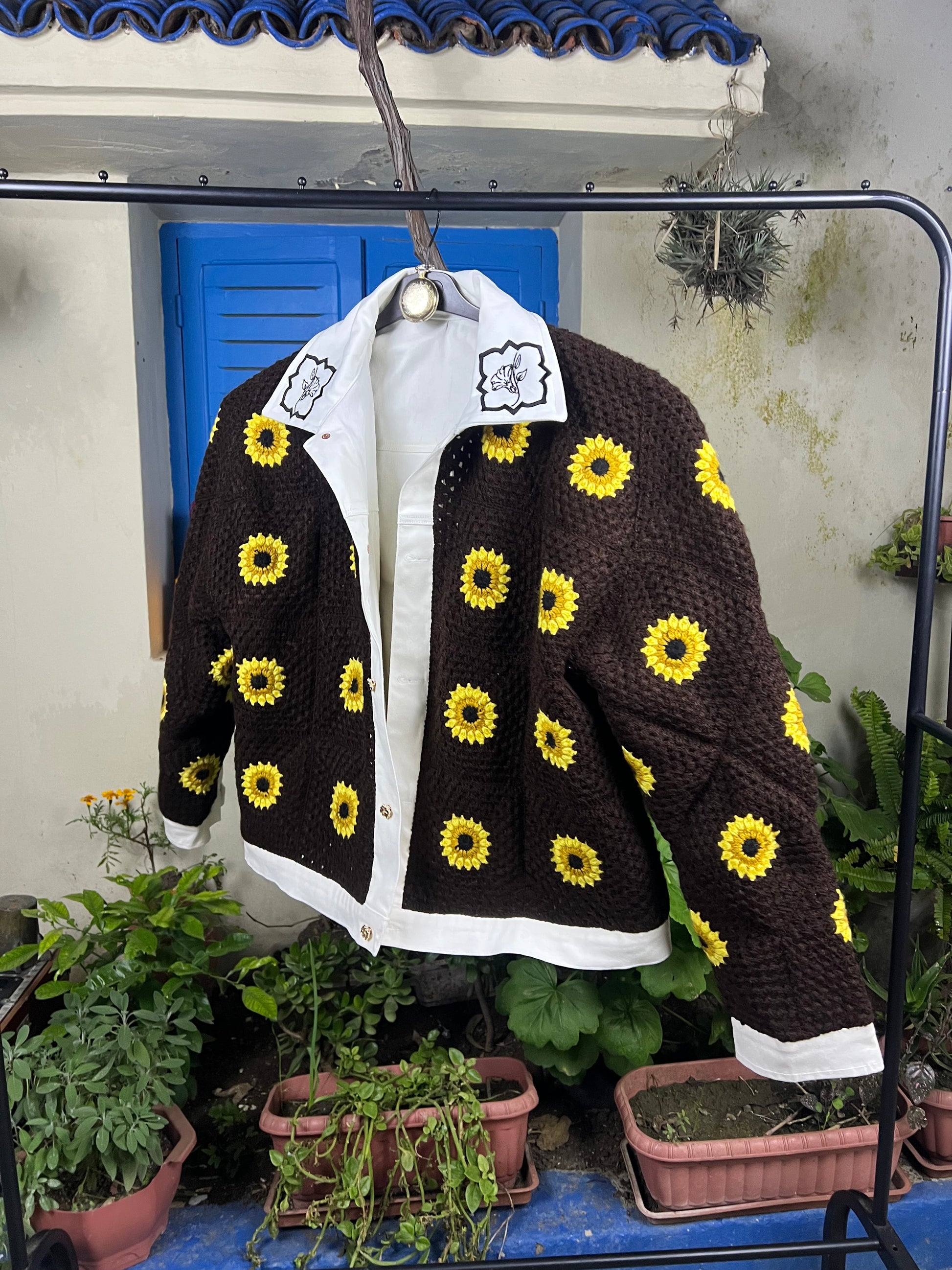 Fourth Night carries a deep brown crochet base, detailed with vibrant yellow sunflower-inspired motifs — like lights glowing in the calm of Ramadan evenings.