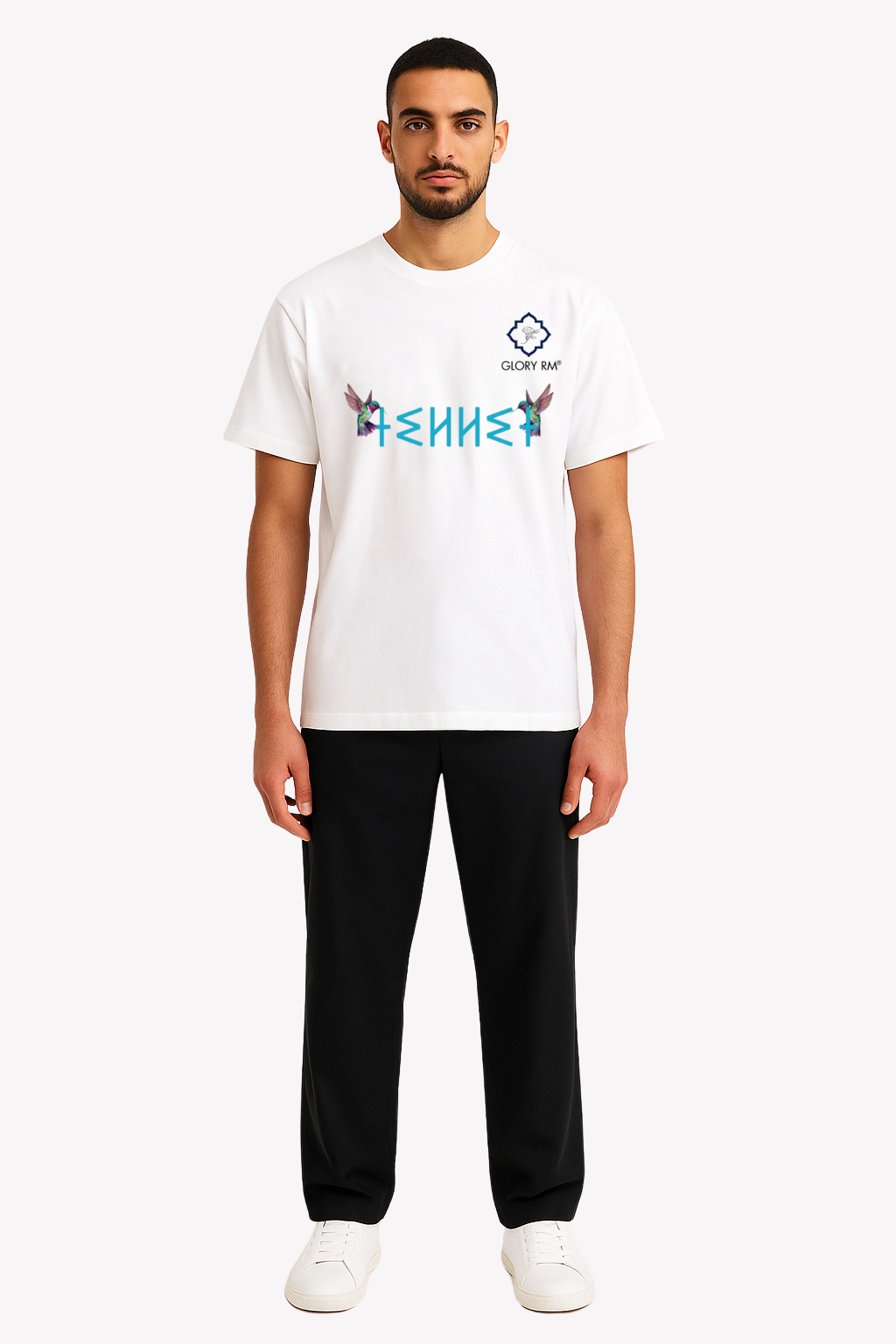Le t-shirt *Vision Sacrée* incarne la sagesse du paon — messager mystique dans plusieurs cultures — et la puissance de la lumière intérieure.