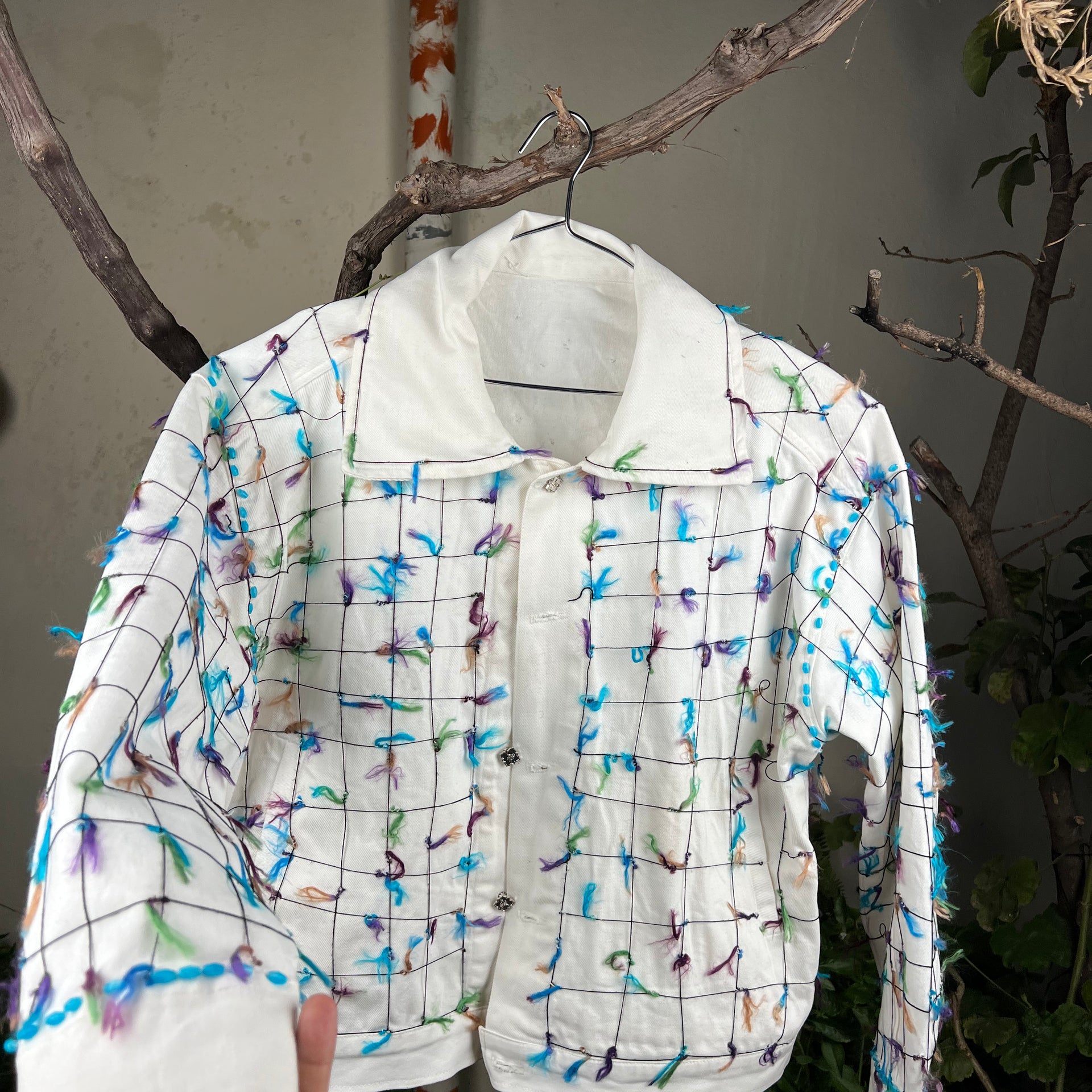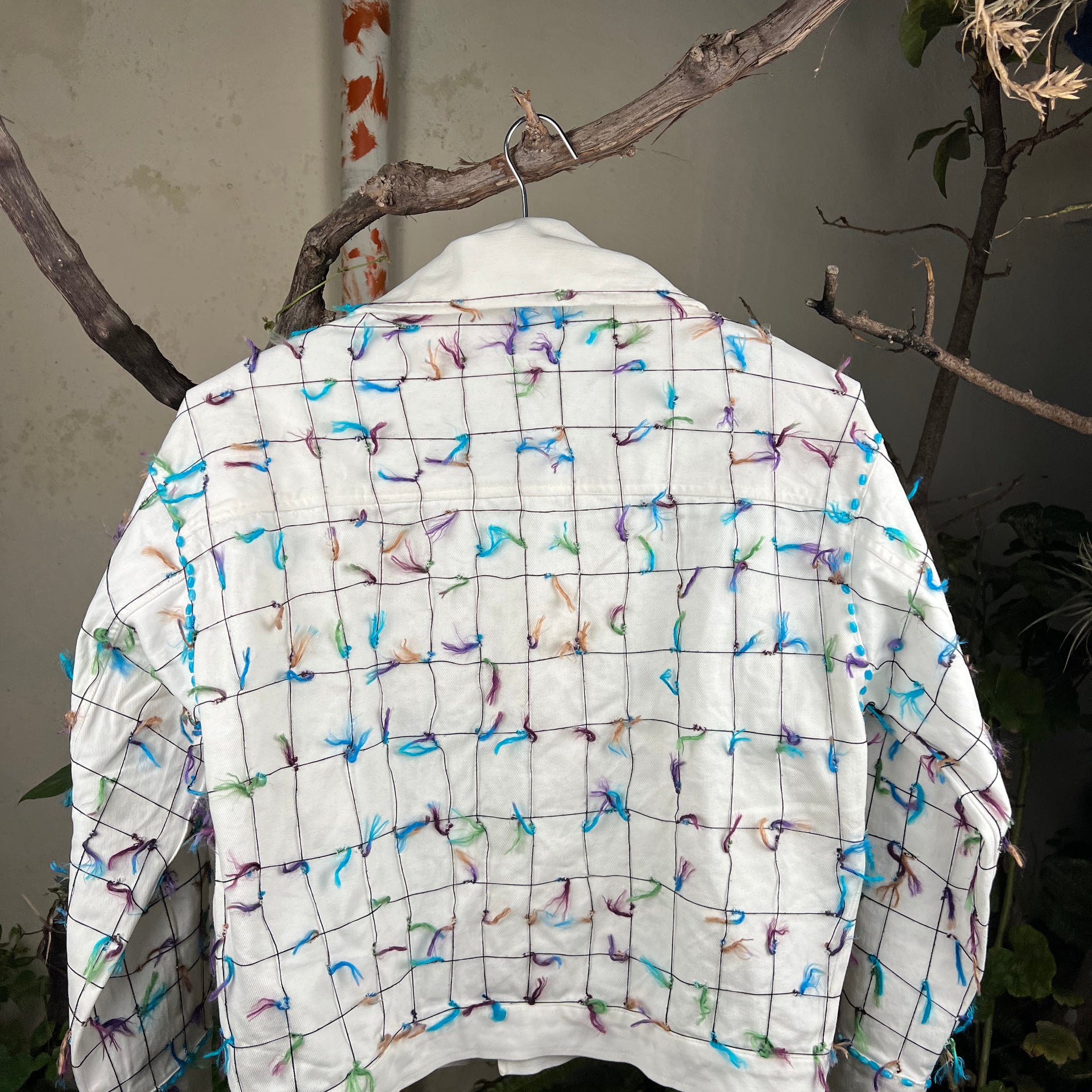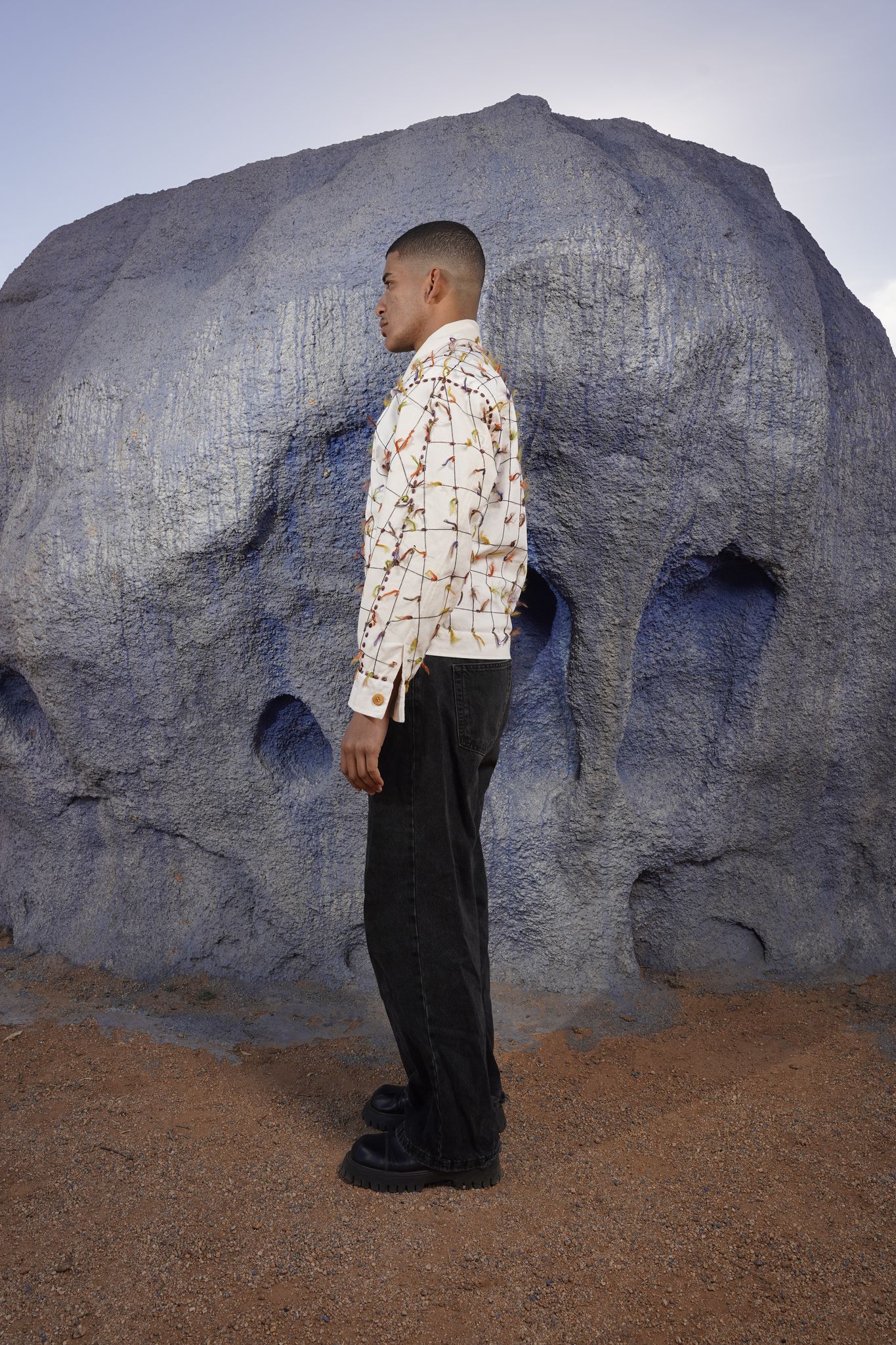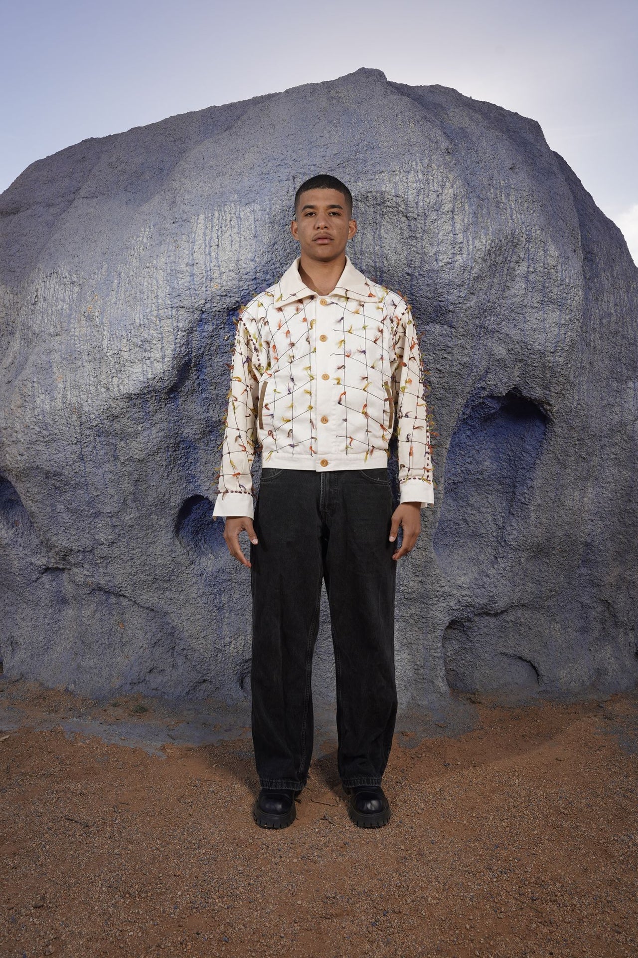 Chaque veste est entièrement faite à la main, garantissant un savoir-faire authentique et une qualité durable. Son design rend hommage aux roches peintes de Tafraout, symbole d’un patrimoine naturel et culturel unique au Maroc.