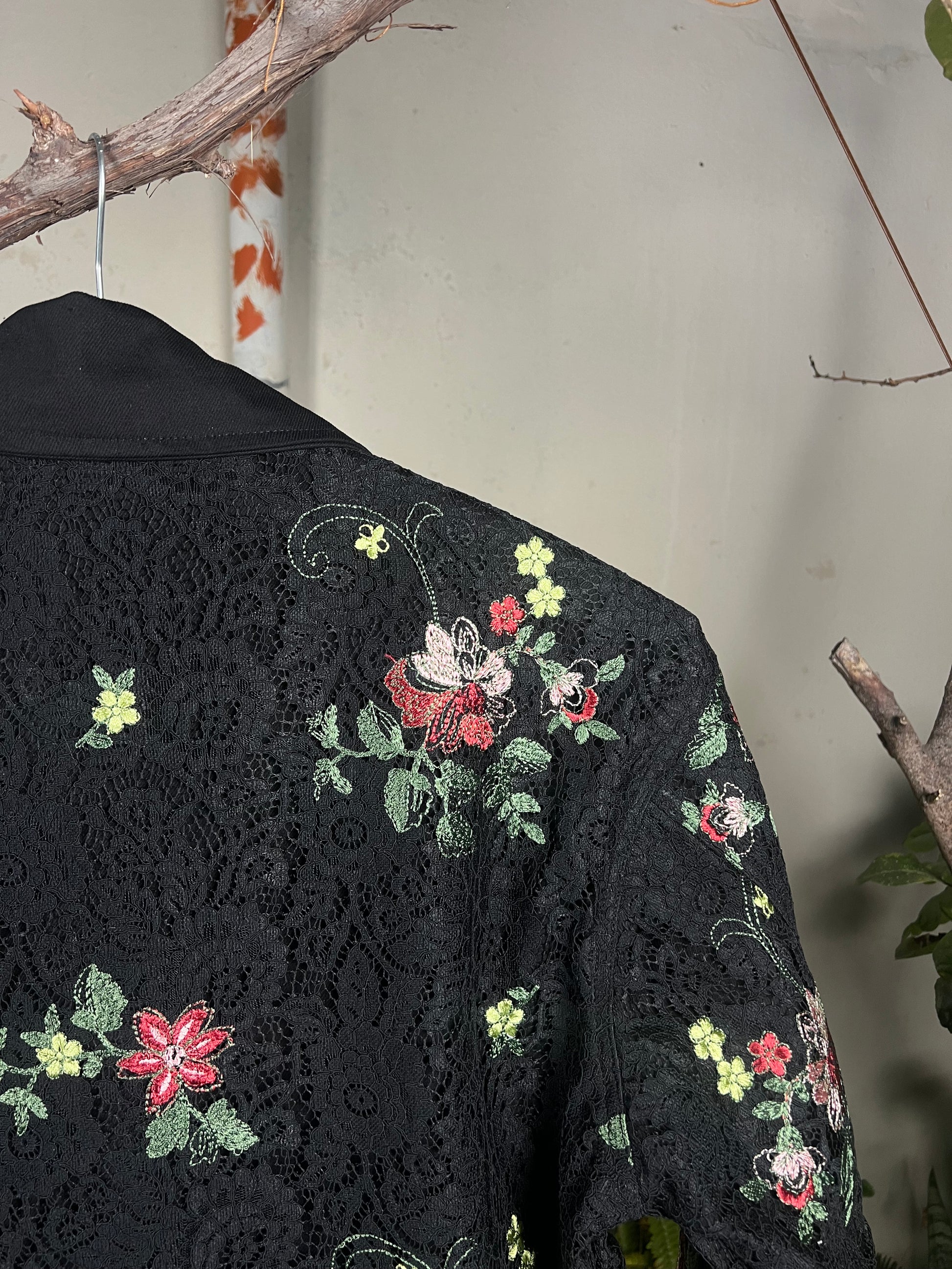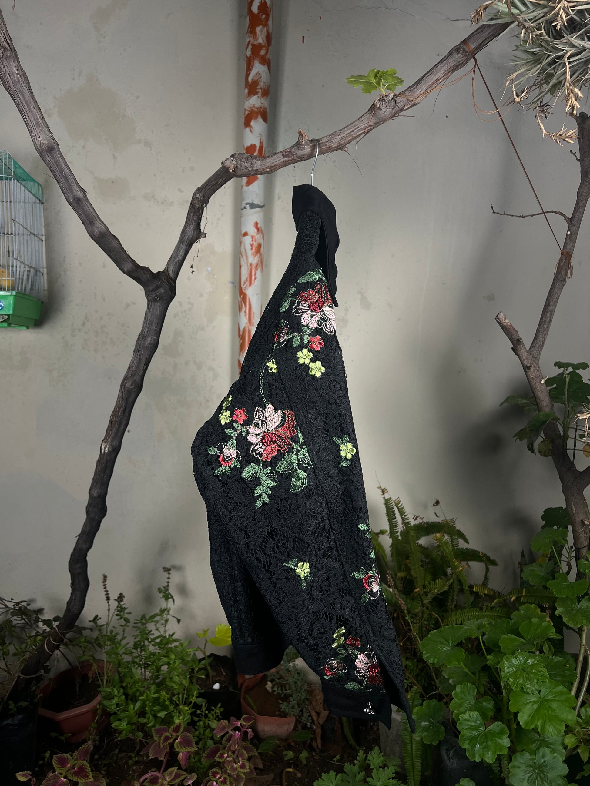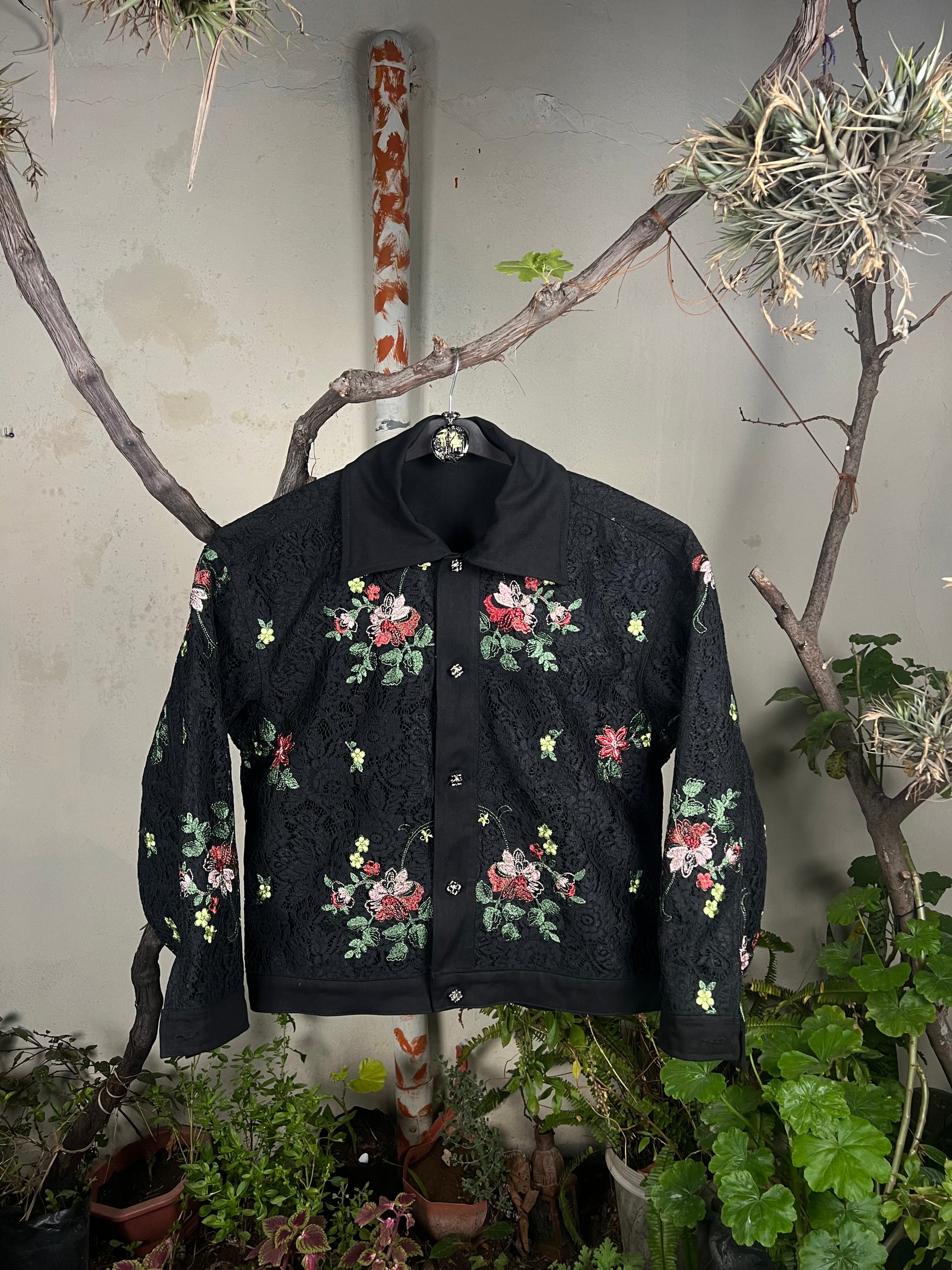 The Dead Dance Jacket embodies contrast — black lace and blooming florals, fragility and strength, endings and rebirth.
