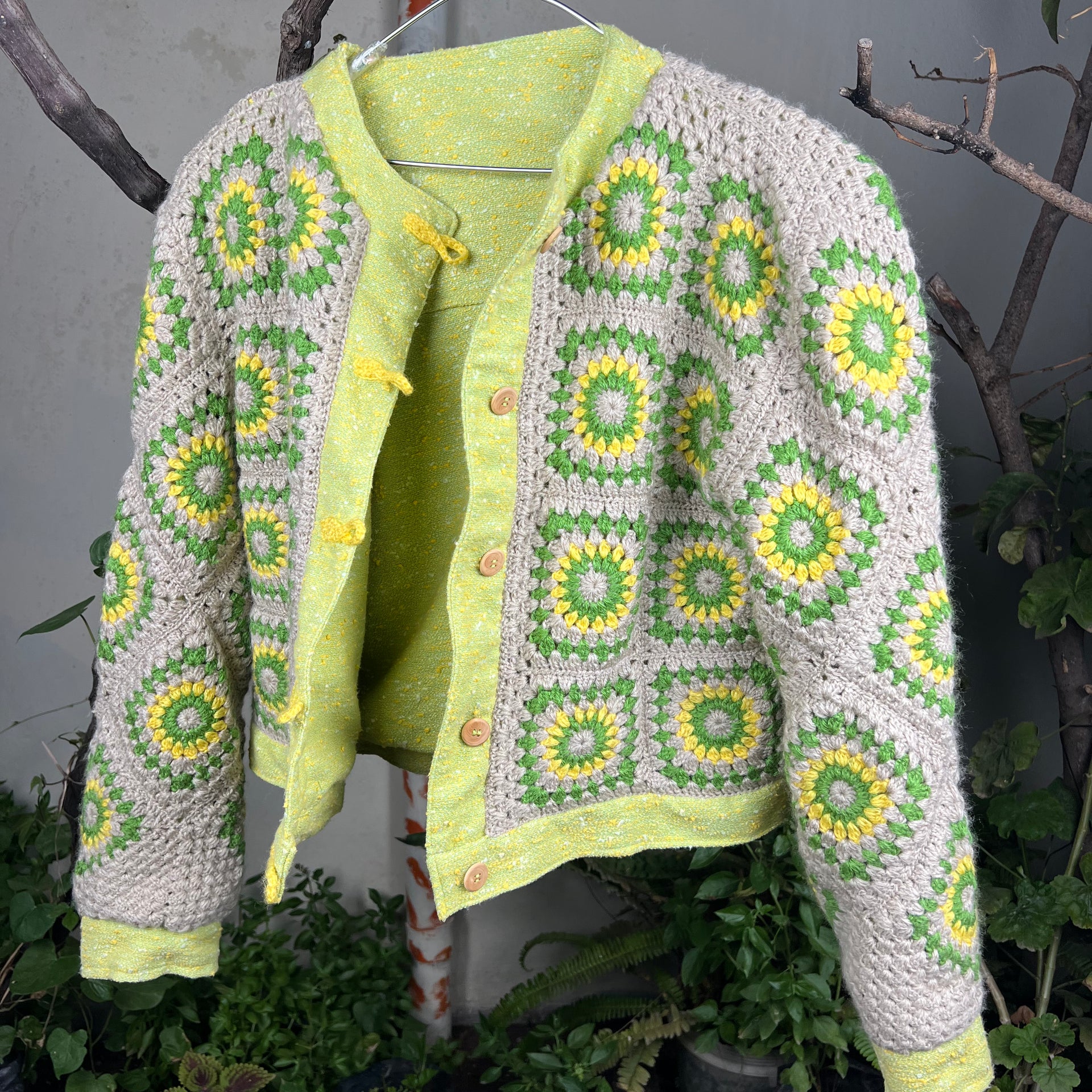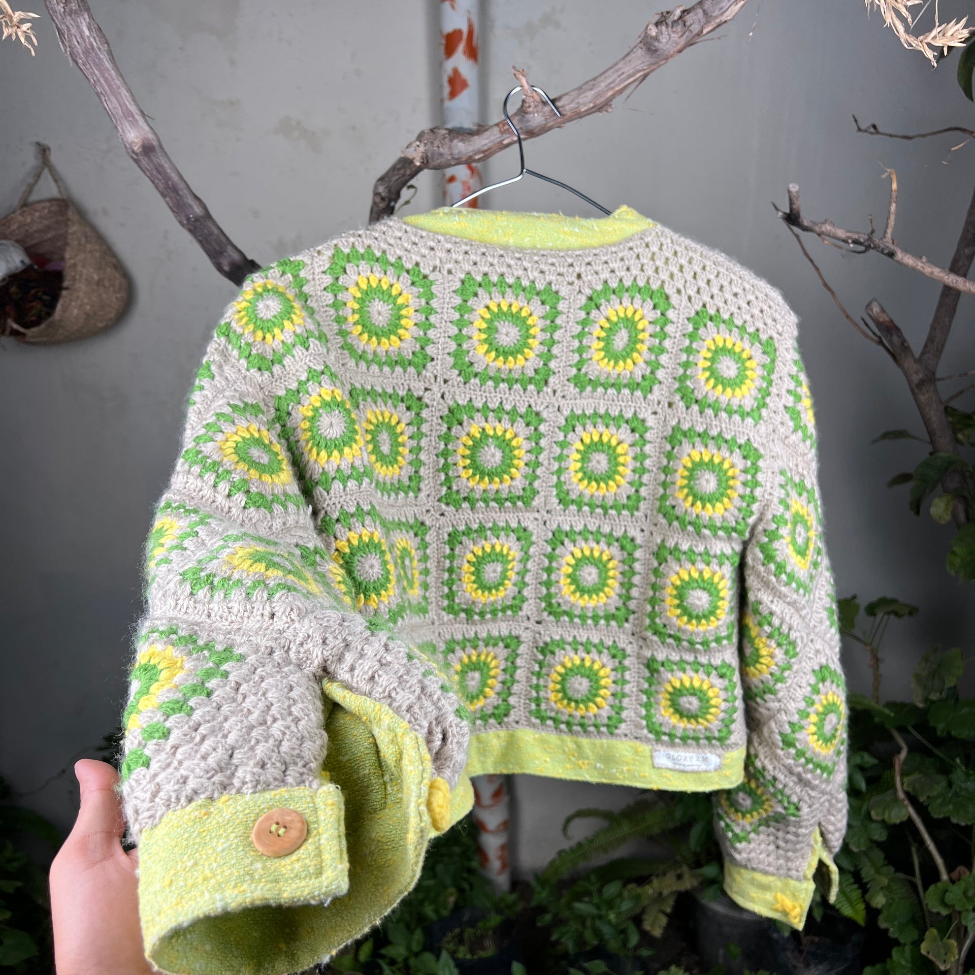 Emblème de paix, de longévité et de sagesse, l’olivier — “zitoune” en arabe — est ici réinterprété sous forme de motifs géométriques en tons verts intenses. Cette veste évoque les vergers du Rif, les champs du sud, et les marchés berbères où l’huile d’olive tient une place sacrée dans la vie quotidienne.